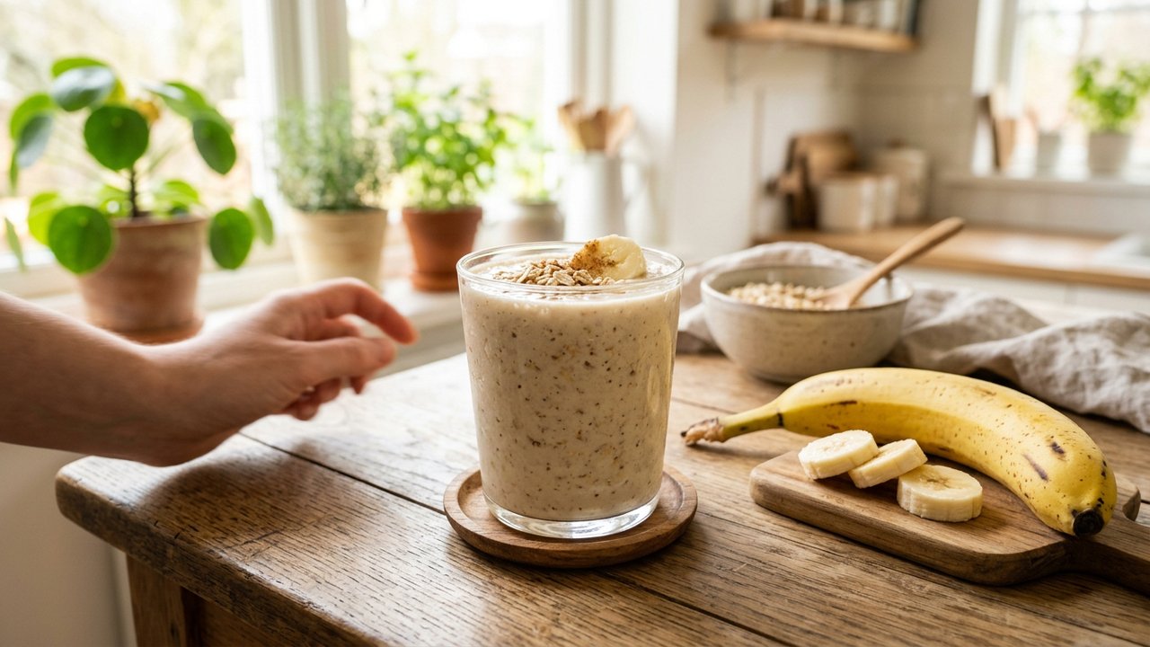 Vitamina de banana com aveia para disposição imediata