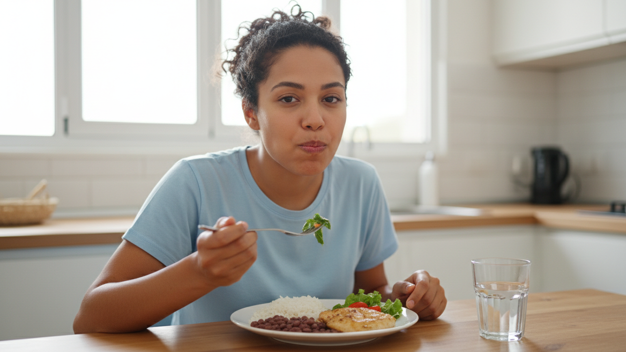 - Ambiente Calmo: Evite comer em frente a telas; a distração faz você voltar ao padrão automático de engolir rápido.