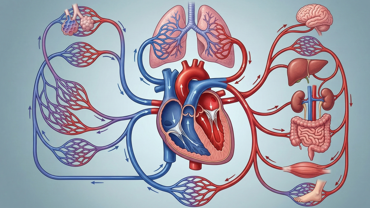 Para que o bombeamento seja eficaz, o coração depende de uma rede complexa de condutores que variam em tamanho e função. As artérias transportam o sangue sob alta pressão, enquanto as veias o trazem de volta com auxílio de válvulas. Os capilares permitem a troca real de nutrientes e gases nos tecidos fundamentais do organismo.
