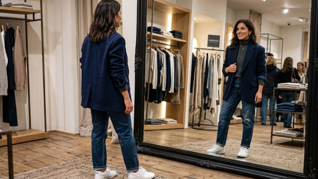 Como usar blazer oversized aos 40 com calça jeans e tênis em looks elegantes para o outono 2026