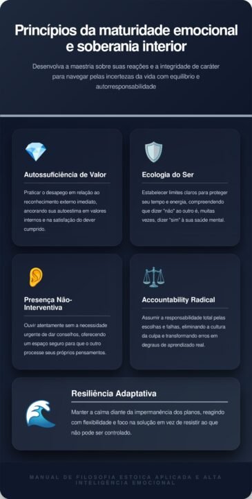 Identificar o surgimento de emoções negativas sem se deixar levar por elas é uma habilidade rara. Indivíduos fortes observam seus sentimentos como se fossem espectadores externos, evitando reações automáticas e prejudiciais. Essa distância psíquica permite que a pessoa escolha a resposta mais adequada, mantendo a integridade do caráter mesmo diante de provocações diretas ou injustiças sociais graves.