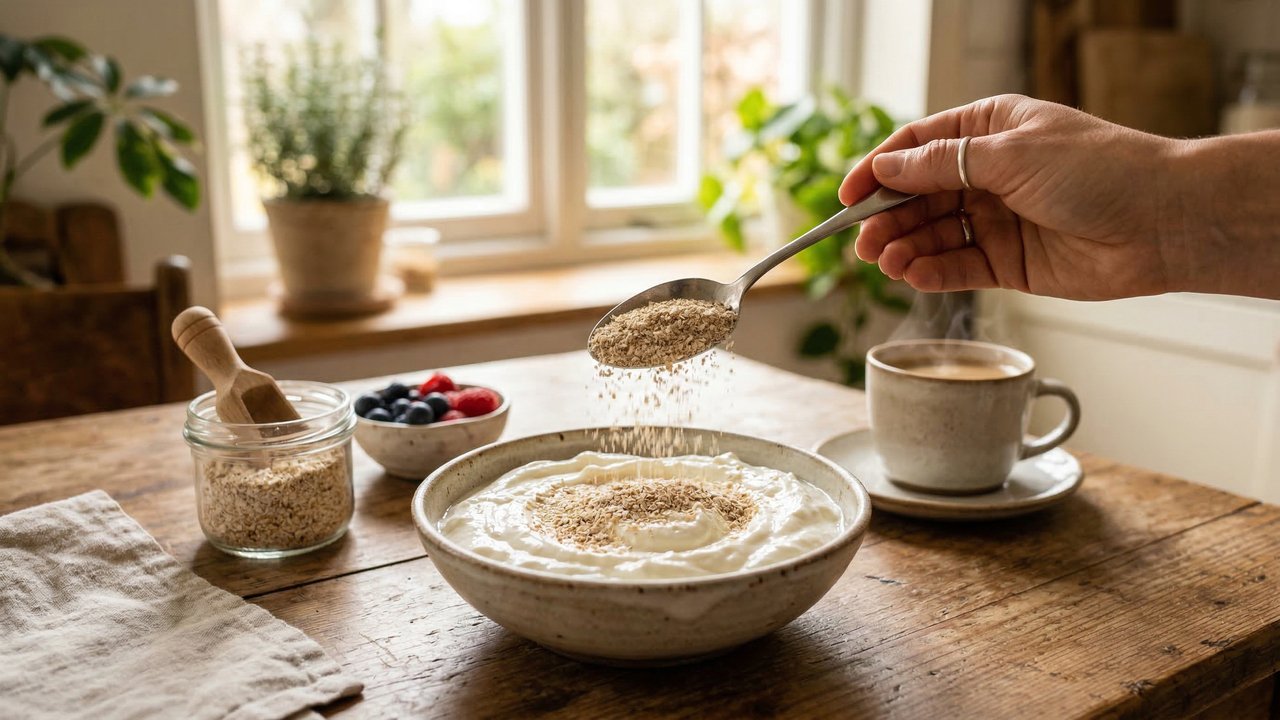 Adicionar uma colher de farelo de aveia no iogurte todos os dias bloqueia a absorção exagerada de gorduras ruins no intestino. Essa mistura prática e rápida cria uma barreira protetora no sistema digestivo que reduz drasticamente o risco cardiovascular e eleva a saciedade.