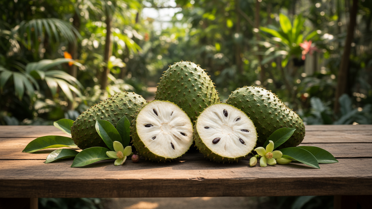 A graviola, conhecida cientificamente como Annona muricata, é uma fruta tropical presente em diversas culturas e ganha reconhecimento por suas promissoras propriedades terapêuticas. Estudos modernos destacam seus compostos bioativos, especialmente as acetogeninas, presentes em folhas, casca, sementes e fruto, e cada vez mais as pesquisas científicas confirmam seu potencial na medicina natural.