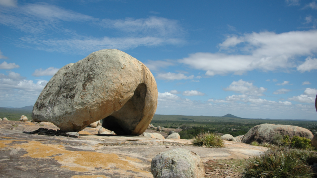 A poucos quilômetros do centro da cidade, o cenário muda radicalmente e assume contornos quase surreais. O Lajedo de Pai Mateus é uma imensa formação rochosa onde gigantescos blocos de granito arredondados — os chamados “matacões” — parecem repousar em equilíbrio improvável. Algumas dessas pedras, com peso de várias toneladas, dão a impressão de terem sido posicionadas de forma deliberada pela própria natureza.