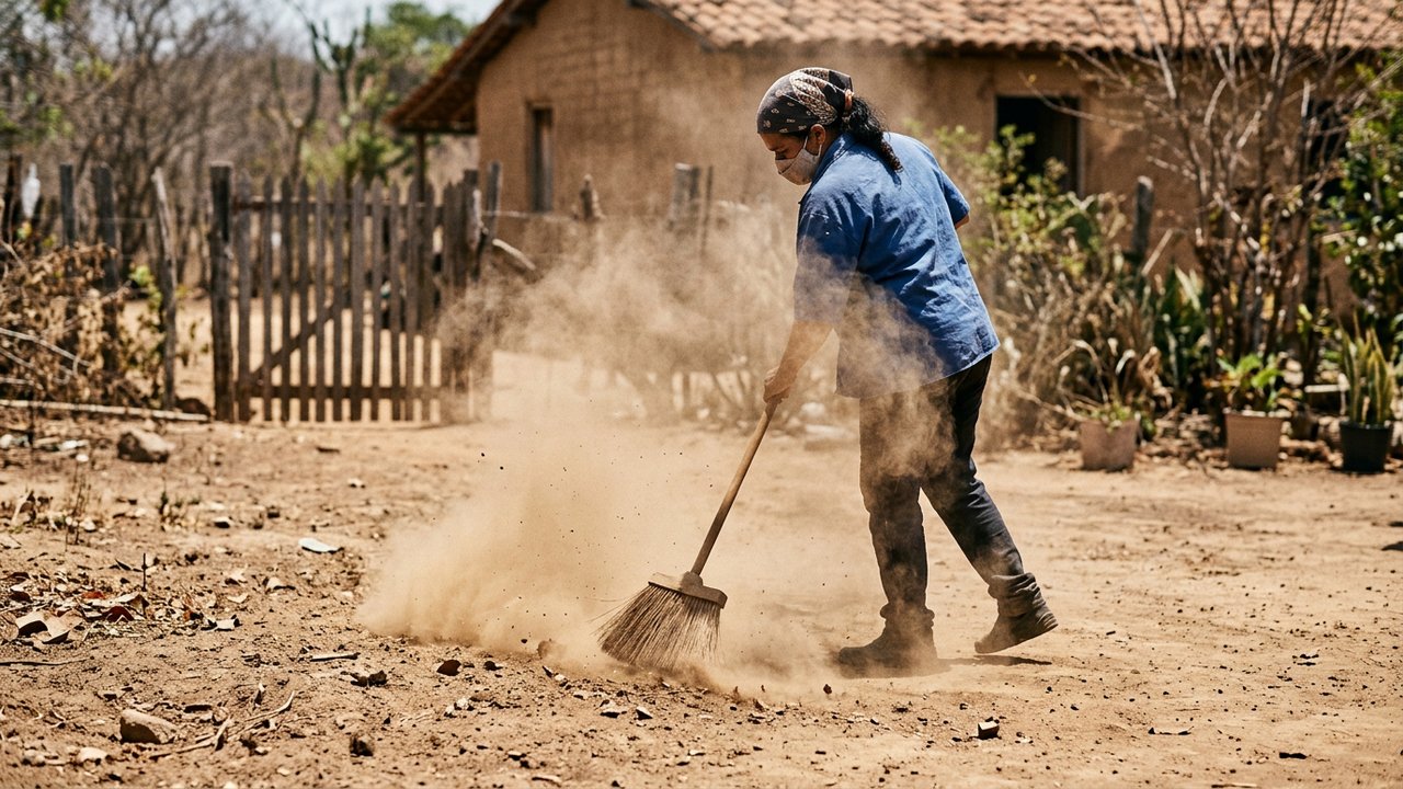 O hábito de varrer o quintal seco levanta nuvens de poeira fina capazes de penetrar profundamente nos pulmões. Essa prática diária irrita as vias aéreas e agrava doenças ocultas de forma bastante silenciosa e perigosa.