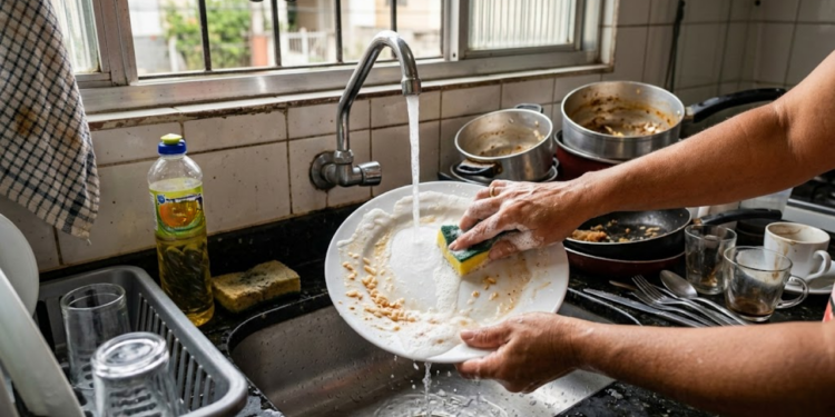 - Pratos e panelas: Deixe os itens pesados e muito engordurados sempre para o final da fila de limpeza.