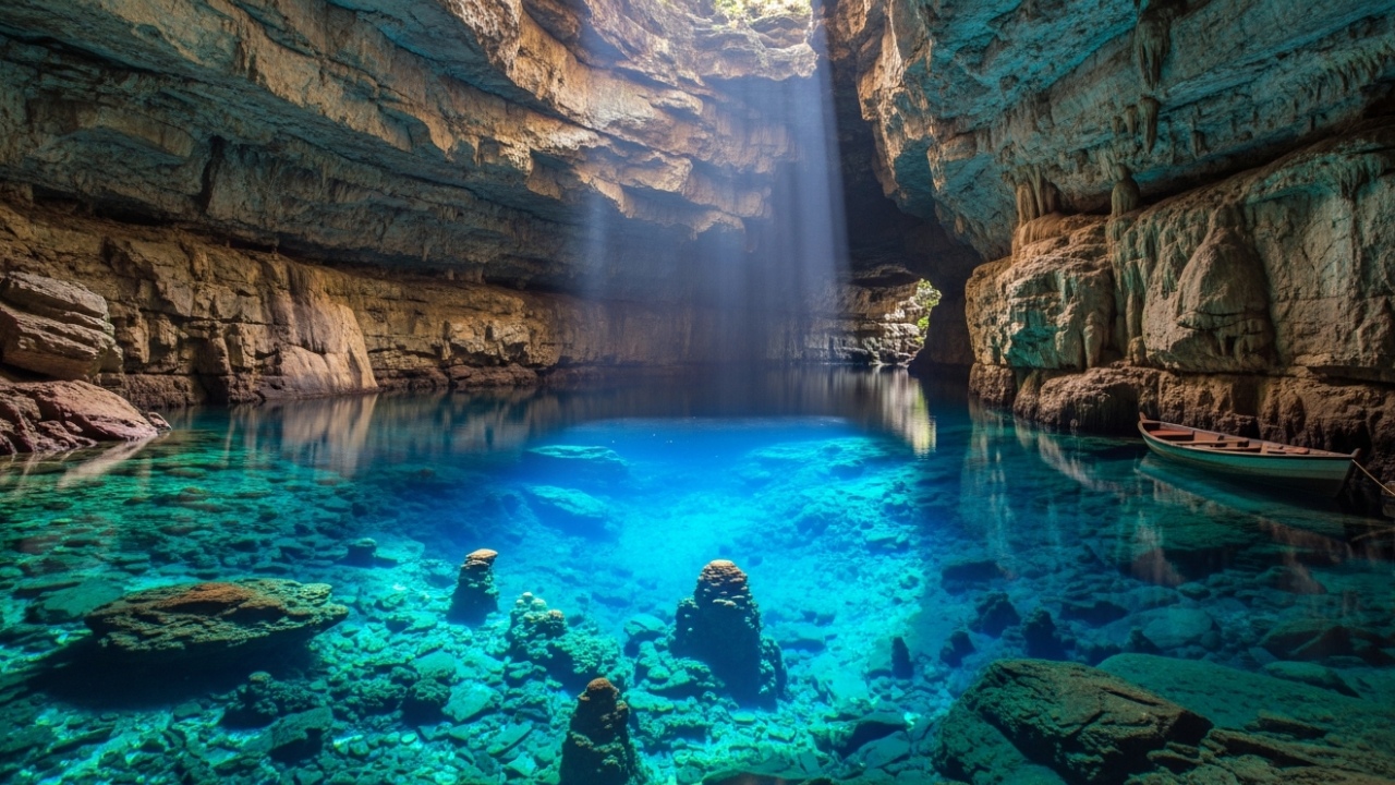- A transparência das águas nos poços de inundação das grutas permite visibilidade total até o fundo, mesmo em profundidades superiores a 60 metros.