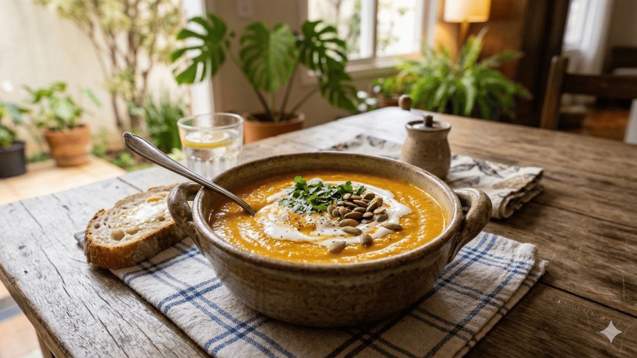 Qual é a importância da sopa de abóbora com gengibre na rotina alimentar