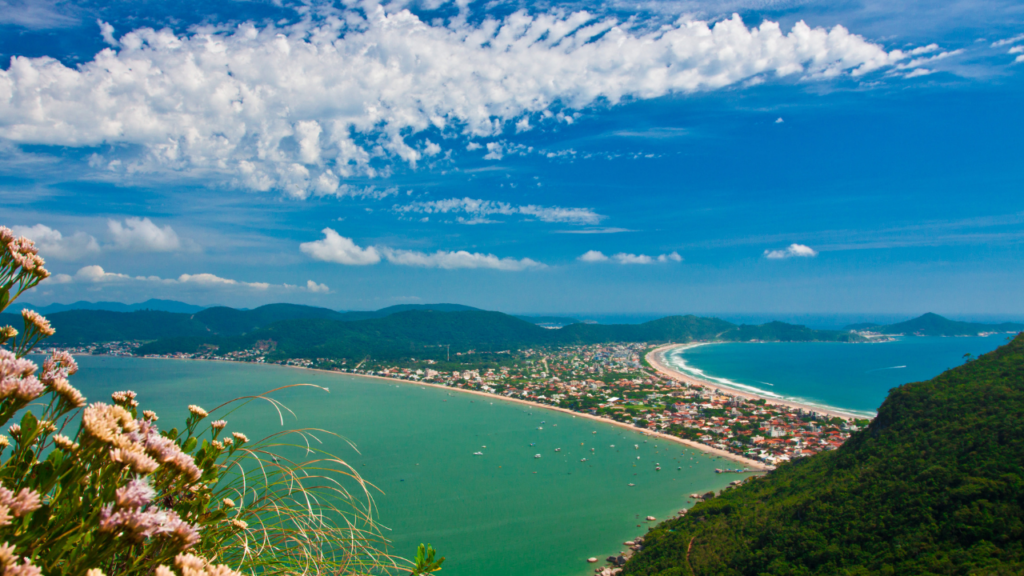 Bombinhas encanta com mar verde-esmeralda, trilhas em morros e pores do sol cinematográficos, perfeita para quem busca refúgio de natureza intensa. // Créditos: YouTube Rúben Daniel Monteiro de Araújo @DiscoveryDrone