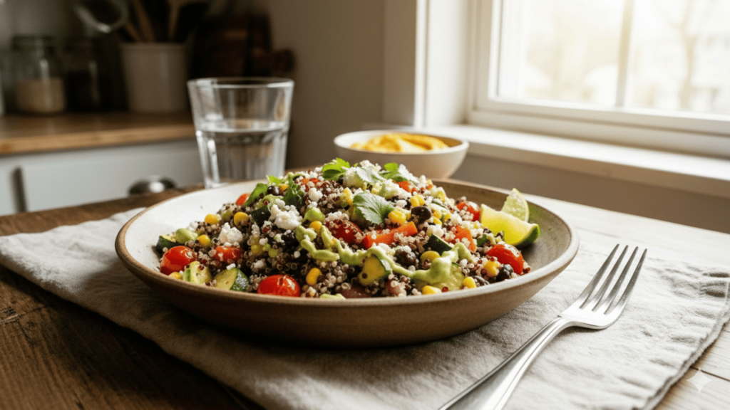 Além disso, minerais como ferro, magnésio e zinco reforçam seu papel na alimentação diária, ajudando na imunidade e no bem-estar geral. Por ter sabor relativamente neutro e preparo simples, a quinoa entra facilmente em pratos do cotidiano, sem exigir grandes mudanças na rotina nem técnicas de cozinha elaboradas.