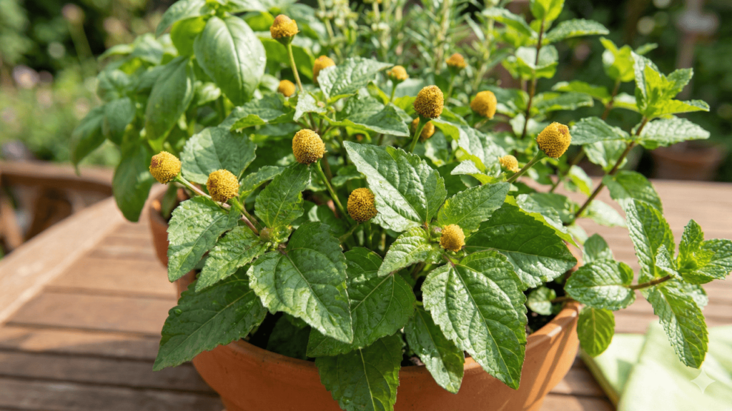 Modo de uso prático: Para dor de dente ou pequenas inflamações bucais, mastigue levemente uma folha fresca de jambu ou aplique extrato da planta (tintura) na área afetada. O efeito de dormência geralmente ocorre em poucos segundos.