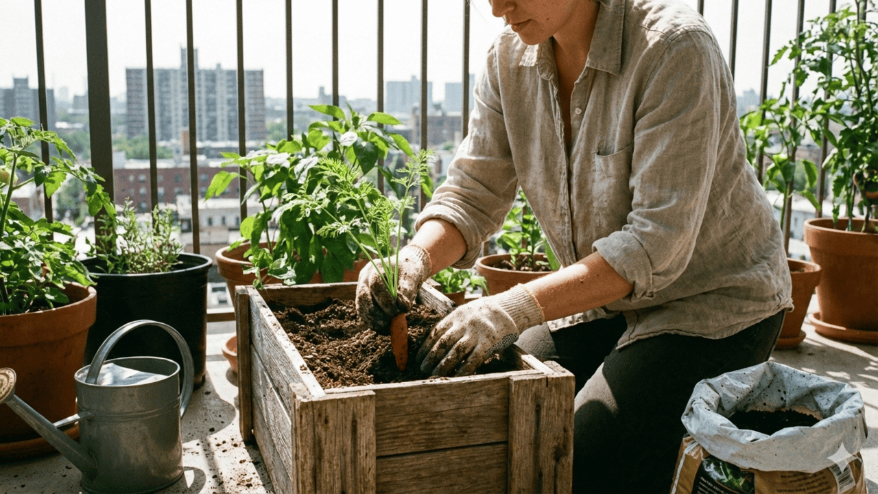 Quem mora em apartamento ou tem apenas uma varanda também pode colher suas próprias cenouras. Em vasos e jardineiras profundas, o essencial é garantir uma boa drenagem com brita ou argila expandida no fundo e usar um substrato leve, que permita à raiz crescer sem esforço.