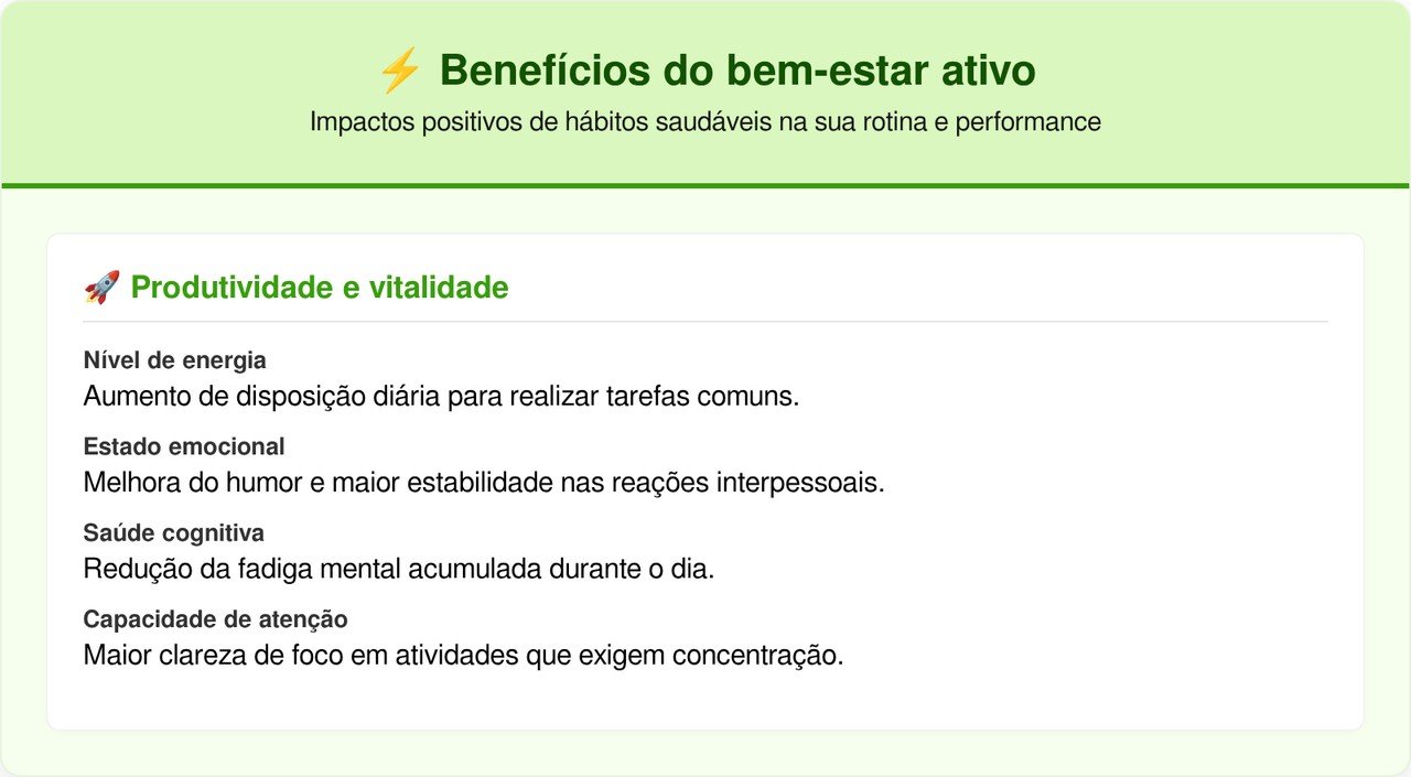 A caminhada diária influencia diretamente os níveis de energia e o equilíbrio emocional ao estimular a liberação de substâncias associadas ao bem-estar. Com a prática constante, o corpo passa a responder com maior disposição e redução da sensação de cansaço ao longo do dia, melhorando a produtividade em tarefas simples de forma constante e leve.