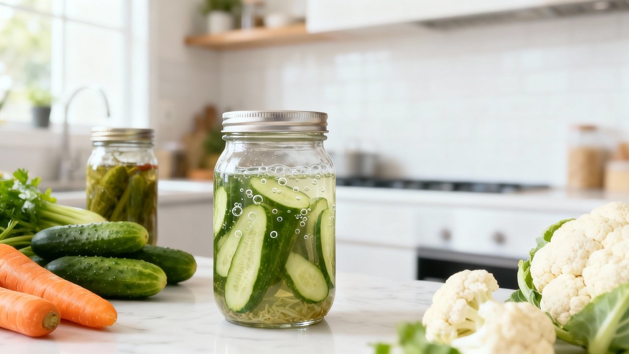 A palavra-chave central aqui é picles fermentado, um alimento que passa por um processo natural de fermentação em salmoura. Nesse método, vegetais como pepino, cenoura ou couve-flor são imersos em água com sal por um período específico, permitindo que microrganismos benéficos transformem açúcares em ácidos orgânicos, gerando o sabor característico e as bactérias probióticas.