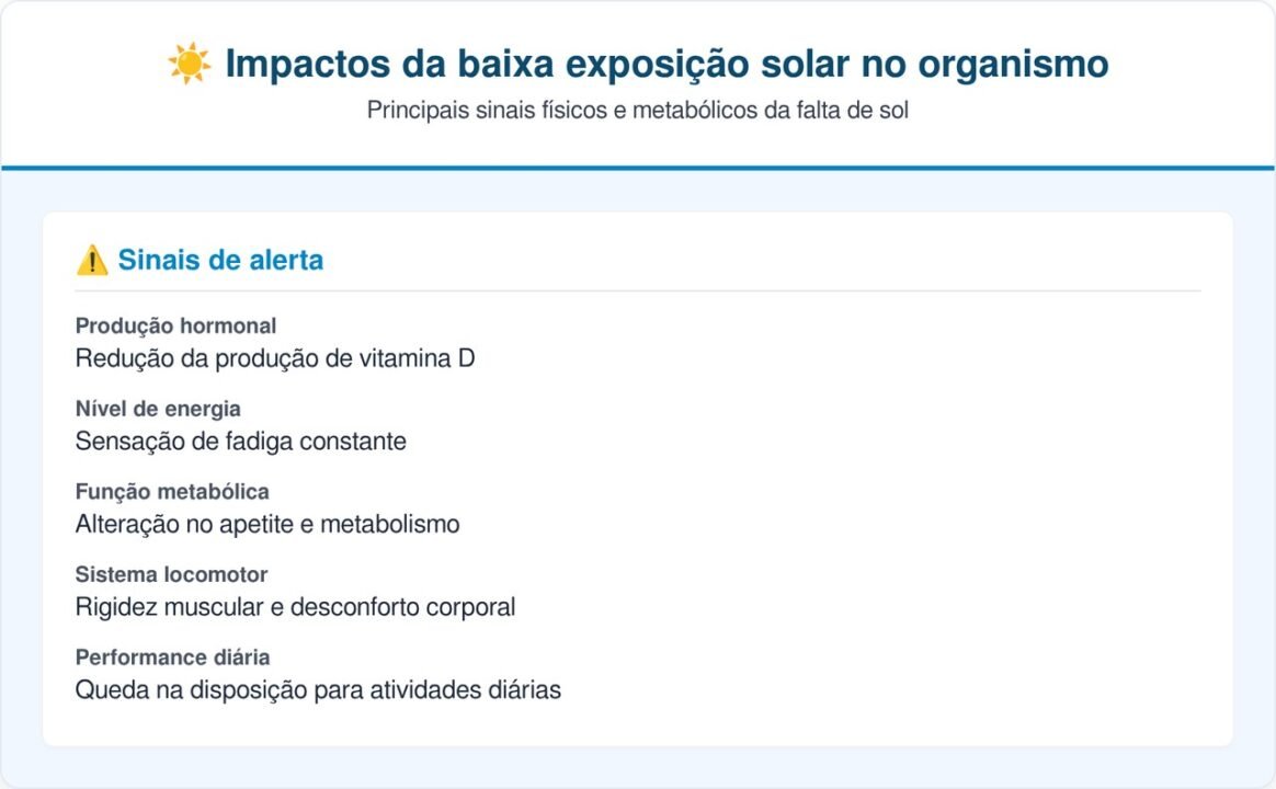 A permanência contínua em casa pode gerar alterações progressivas no corpo, especialmente quando associada à baixa exposição solar e pouca movimentação. Esses fatores influenciam diferentes funções biológicas e podem causar efeitos que vão além do simples desconforto momentâneo.