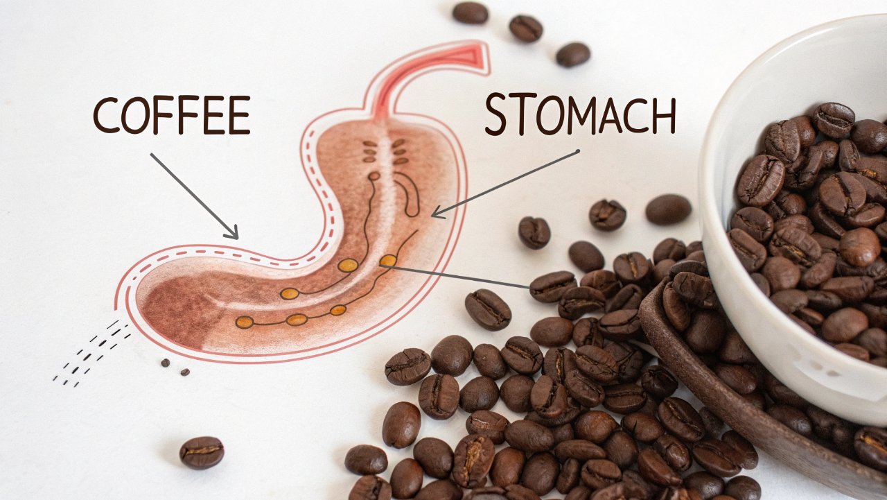 Quando ingerido sem alimento, o café aumenta a secreção de ácido clorídrico no estômago, podendo irritar a mucosa gástrica. Esse efeito é mais perceptível em indivíduos com gastrite, refluxo ou sensibilidade estomacal, podendo resultar em azia, queimação ou desconforto abdominal.
