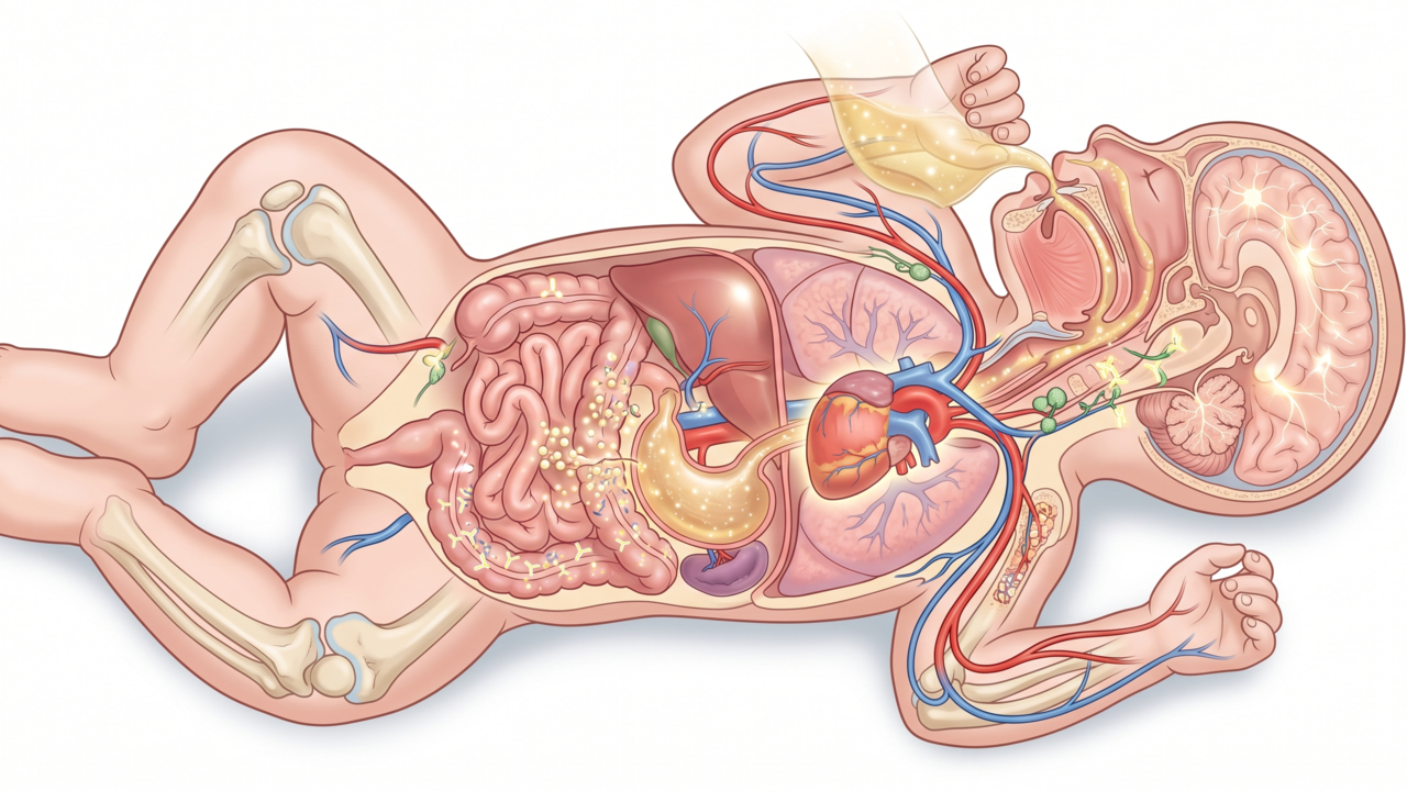 Os ácidos graxos de cadeia longa presentes na amamentação são fundamentais para a formação da bainha de mielina nos neurônios cerebrais. Esse isolamento térmico e elétrico acelera a transmissão de impulsos nervosos, resultando em um melhor desempenho nas funções motoras e sensoriais. A nutrição cerebral adequada durante os primeiros meses impacta diretamente a capacidade futura de aprendizado.