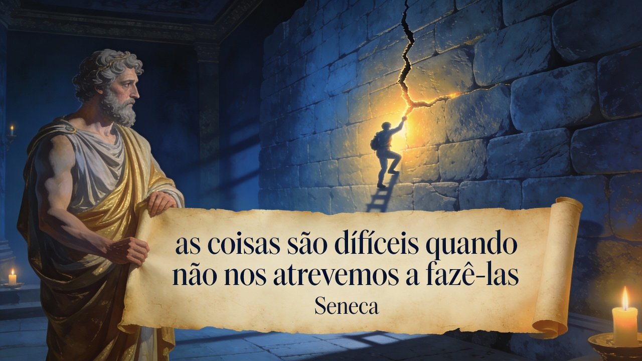 Uma das ideias mais citadas de Sêneca afirma, em essência, que muitas coisas parecem difíceis porque a pessoa não se atreve a fazê-las. Em vez de partir do princípio de que um objetivo é inviável, o filósofo sugere inverter a lógica: a tarefa não é pesada por natureza; ela se torna pesada quando permanece parada no campo das intenções, sem um primeiro gesto concreto.