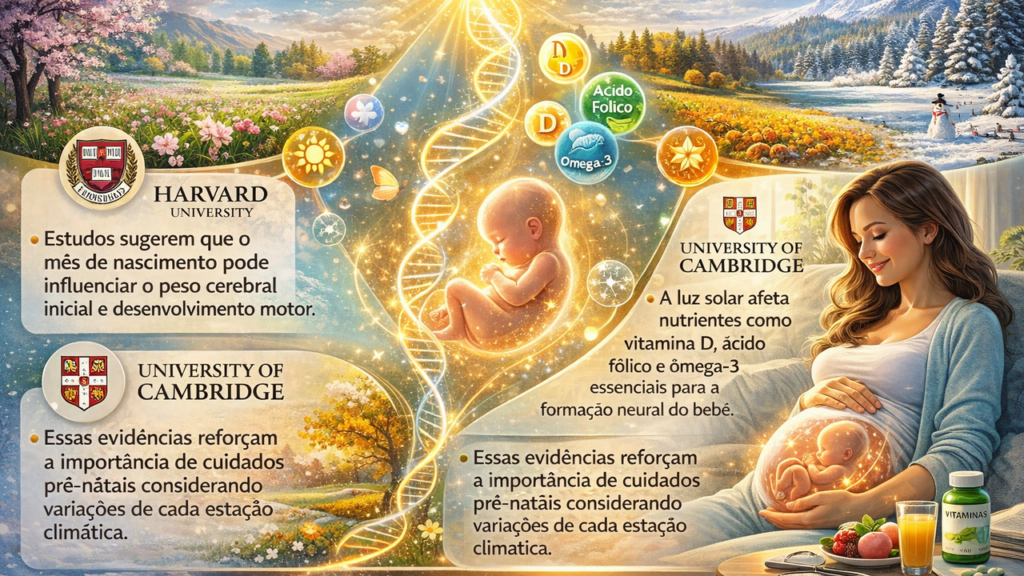 Investigações publicadas pela Harvard University sugerem que o mês de nascimento pode estar correlacionado ao peso cerebral inicial e ao desenvolvimento motor. Essas evidências reforçam a importância de cuidados pré-natais que considerem as variações de cada estação climática.