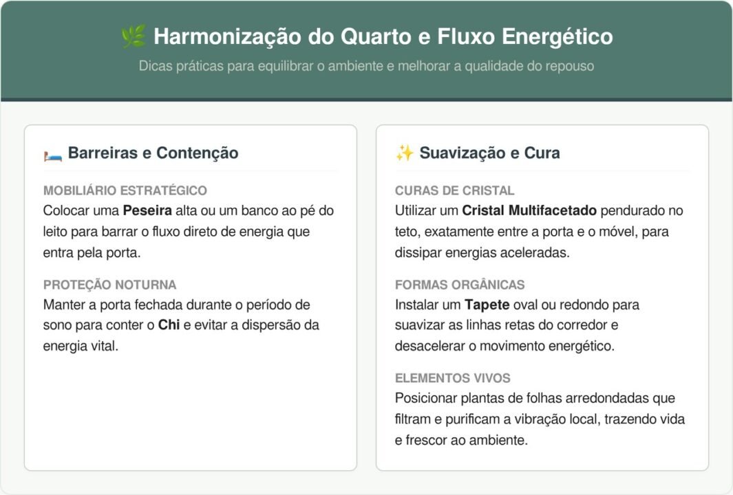 Se a arquitetura do cômodo impede a mudança da Cama, existem curas específicas que ajudam a mitigar o impacto da correnteza energética frontal. Utilizar elementos físicos que criem uma barreira visual e simbólica é a estratégia mais recomendada para harmonizar a Energia do Quarto sem reformas.