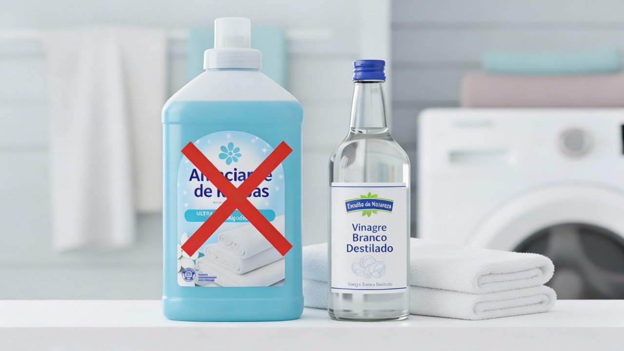 O segredo das toalhas de hotel felpudas e absorventes não está em produtos químicos caros, mas na substituição estratégica do amaciante comercial pelo vinagre branco de álcool. Essa troca simples remove o acúmulo de resíduos que endurece o tecido, devolvendo a maciez original e a capacidade de secagem que o amaciante destrói com o tempo.