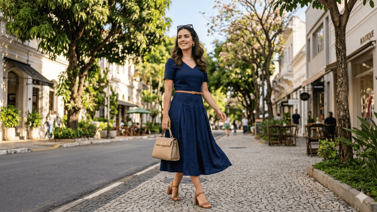 Você já reparou como o vestido midi resolveu a vida de quem quer se arrumar sem pensar demais? Em 2026, ele virou quase “uniforme” nas ruas: prático, confortável e com aquele ar arrumadinho que funciona do trabalho ao almoço com amigas. O comprimento na altura dos joelhos ou canela facilita a transição entre compromissos, e é a escolha dos sapatos que transforma o visual em algo mais despojado, elegante ou moderno.