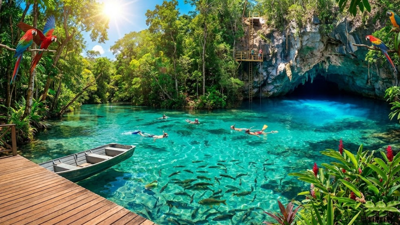 - Águas com transparência única no mundo devido à geologia calcária.
