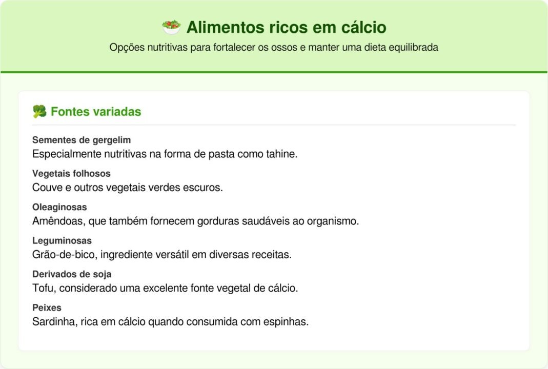 Embora o leite seja amplamente associado ao cálcio, alguns alimentos superam sua concentração por porção. Sementes, vegetais escuros e leguminosas apresentam quantidades expressivas, muitas vezes com melhor biodisponibilidade dependendo da combinação alimentar. Isso torna possível atingir as necessidades diárias sem depender exclusivamente de laticínios.