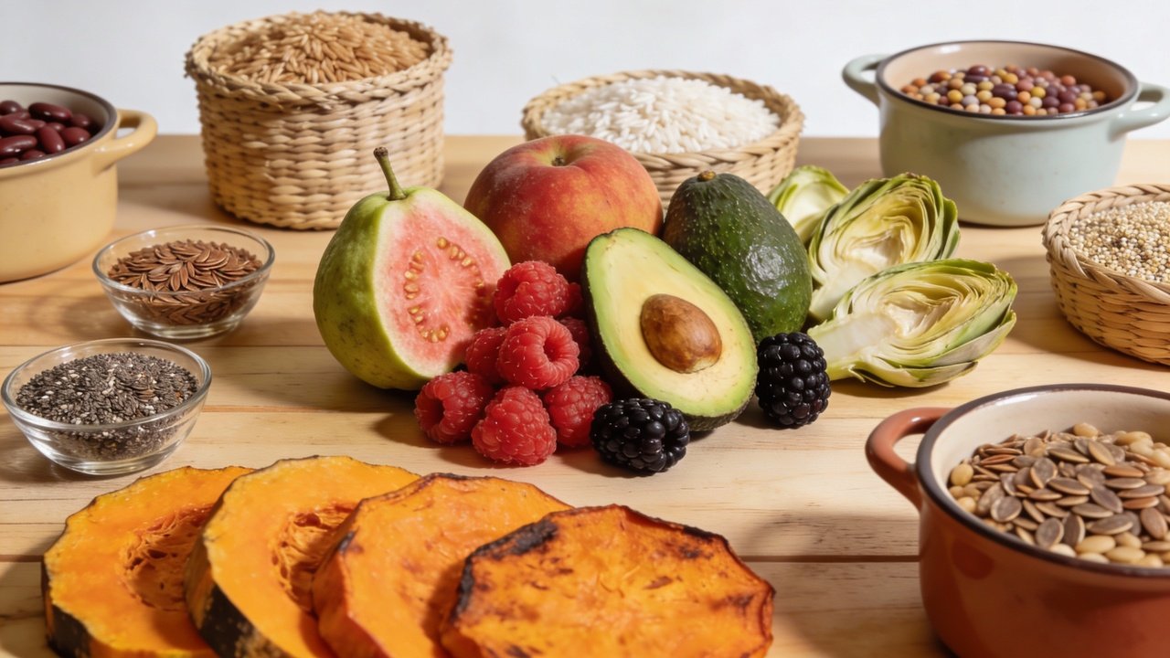 Na prática, uma dieta rica em fibras pode ser montada com opções simples e acessíveis no dia a dia. Frutas como abacate, framboesa, amora-preta e goiaba concentram boas quantidades desse nutriente, junto com vitaminas e compostos antioxidantes, sendo ótimas escolhas para café da manhã e lanches intermediários.