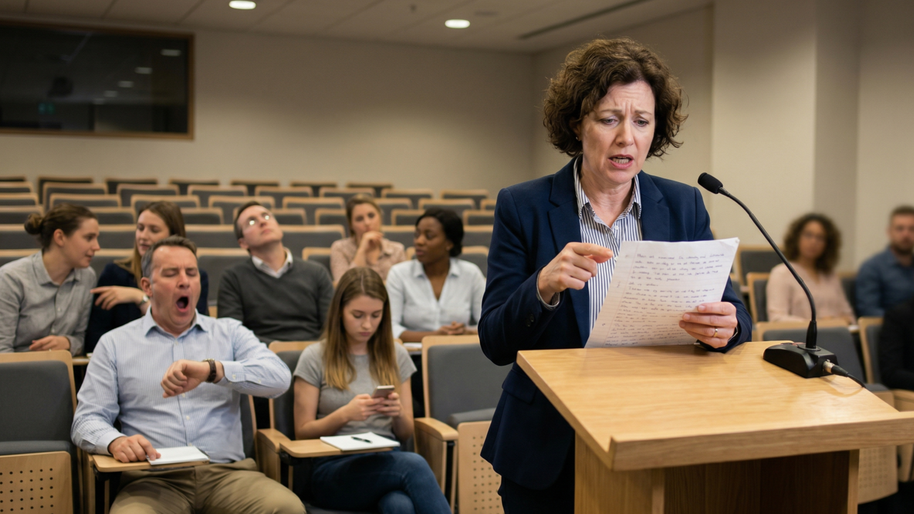 Utilizar um tom de voz linear e sem variações de entonação faz com que a fala se torne previsível e cansativa. O cérebro tende a ignorar estímulos repetitivos que não sinalizam mudanças de emoção ou de importância durante o ato comunicativo constante. Ajustar o volume e a velocidade ajuda a manter o interesse de todos os ouvintes presentes.