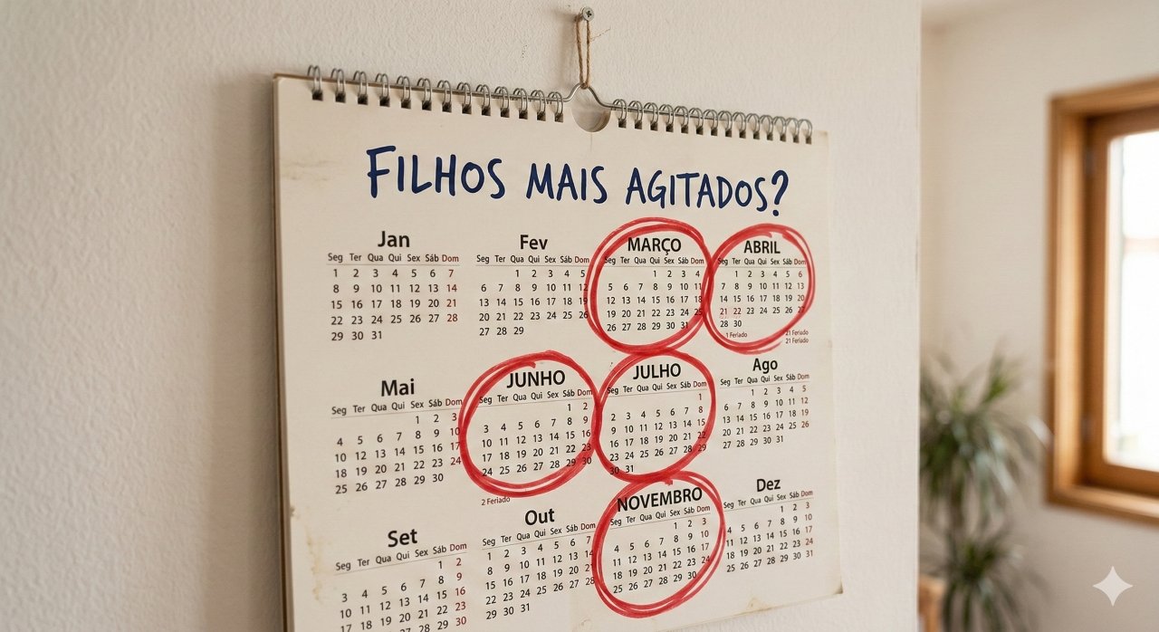 Meses como março, abril, junho, julho e novembro aparecem associados a maior agitação infantil em estudos de psicologia.