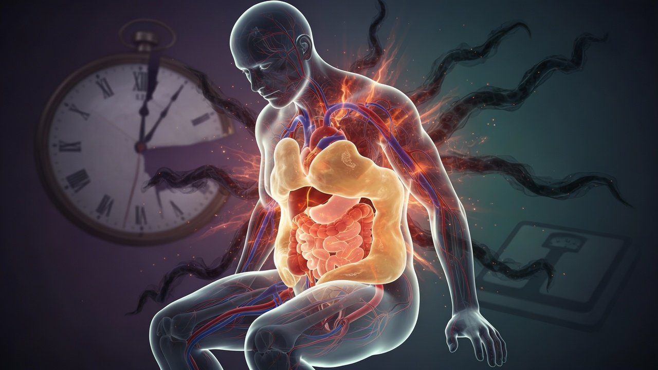 O estresse contínuo nas horas de maior acúmulo de demandas profissionais e tarefas familiares está associado ao aumento da gordura na região abdominal. Em situações prolongadas de tensão, o organismo libera hormônios como o cortisol, que, quando elevado por muito tempo, favorece o armazenamento de gordura no tronco e altera marcadores inflamatórios.
