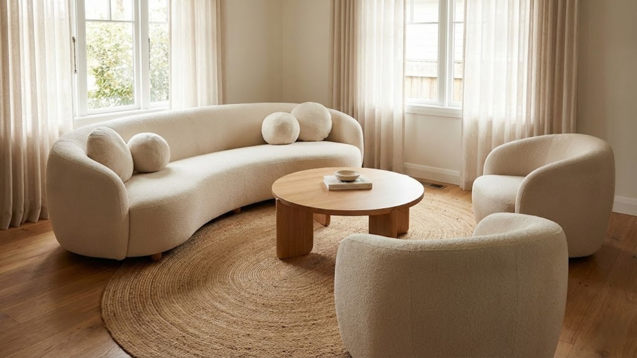 Preferência por sofás curvos e orgânicos para otimizar circulação em salas pequenas