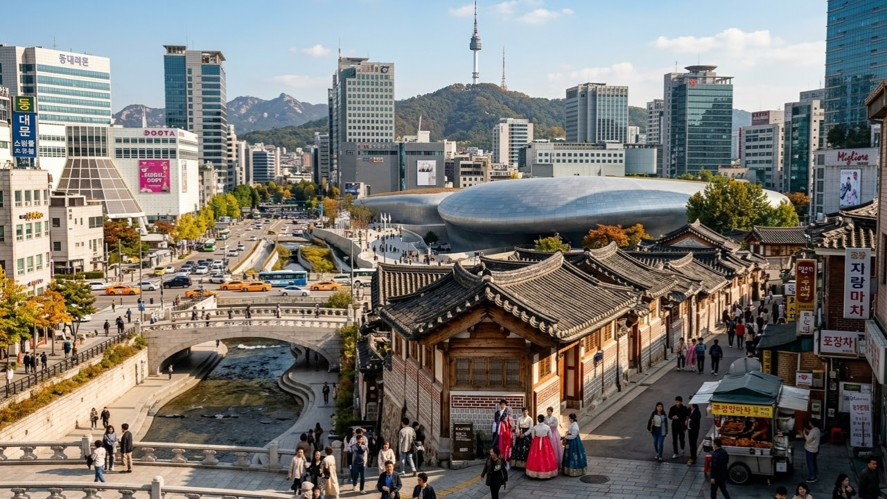 Uma cerimônia de troca de guarda em trajes da dinastia Joseon acontece a poucos metros de um café temático de realidade virtual. Seul, capital da Coreia do Sul, abriga 10 milhões de habitantes em uma metrópole onde templos budistas convivem com arranha-céus de vidro, e o cheiro de kimchi fermentado se mistura ao aroma de café torrado em cada quarteirão.