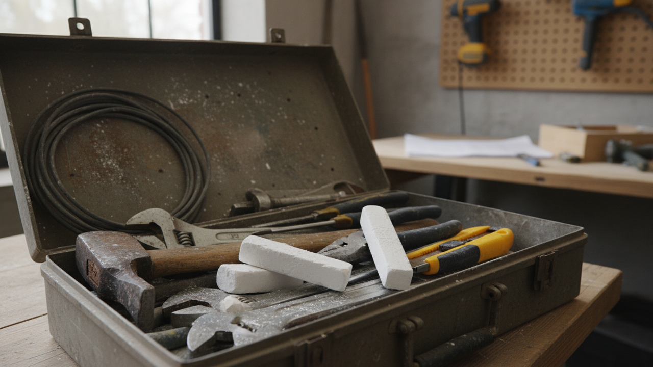 Um pedaço de giz escolar é a arma secreta de mecânicos experientes para manter chaves e alicates brilhando como novos. Esse material barato e poroso atua como um desumidificador passivo em pequenos espaços confinados, protegendo metais sensíveis contra a oxidação causada pelo ar úmido.