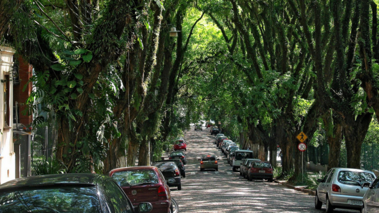 No bairro Independência, no coração de Porto Alegre, uma rua de 500 metros coberta por mais de 150 tipuanas cria um túnel verde tão denso que o sol precisa pedir licença para passar. A Rua Gonçalo de Carvalho foi apelidada de “a rua mais bonita do mundo” por um biólogo português que viu fotos na internet e não acreditou que aquilo ficava numa capital brasileira. O título pegou, viralizou e hoje atrai fotógrafos, casais e urbanistas do mundo inteiro.