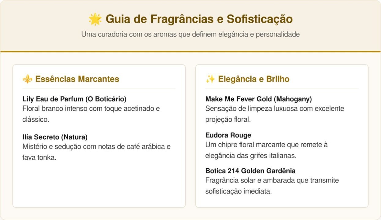 A perfumaria do Brasil alcançou um patamar de excelência que permite às mulheres brasileiras desfrutarem de aromas complexos e memoráveis sem a necessidade de recorrer apenas aos importados. Muitas opções disponíveis em 2026 utilizam tecnologias de extração avançadas para entregar aquela sensação de “cheiro de rica” logo no primeiro contato com a pele.