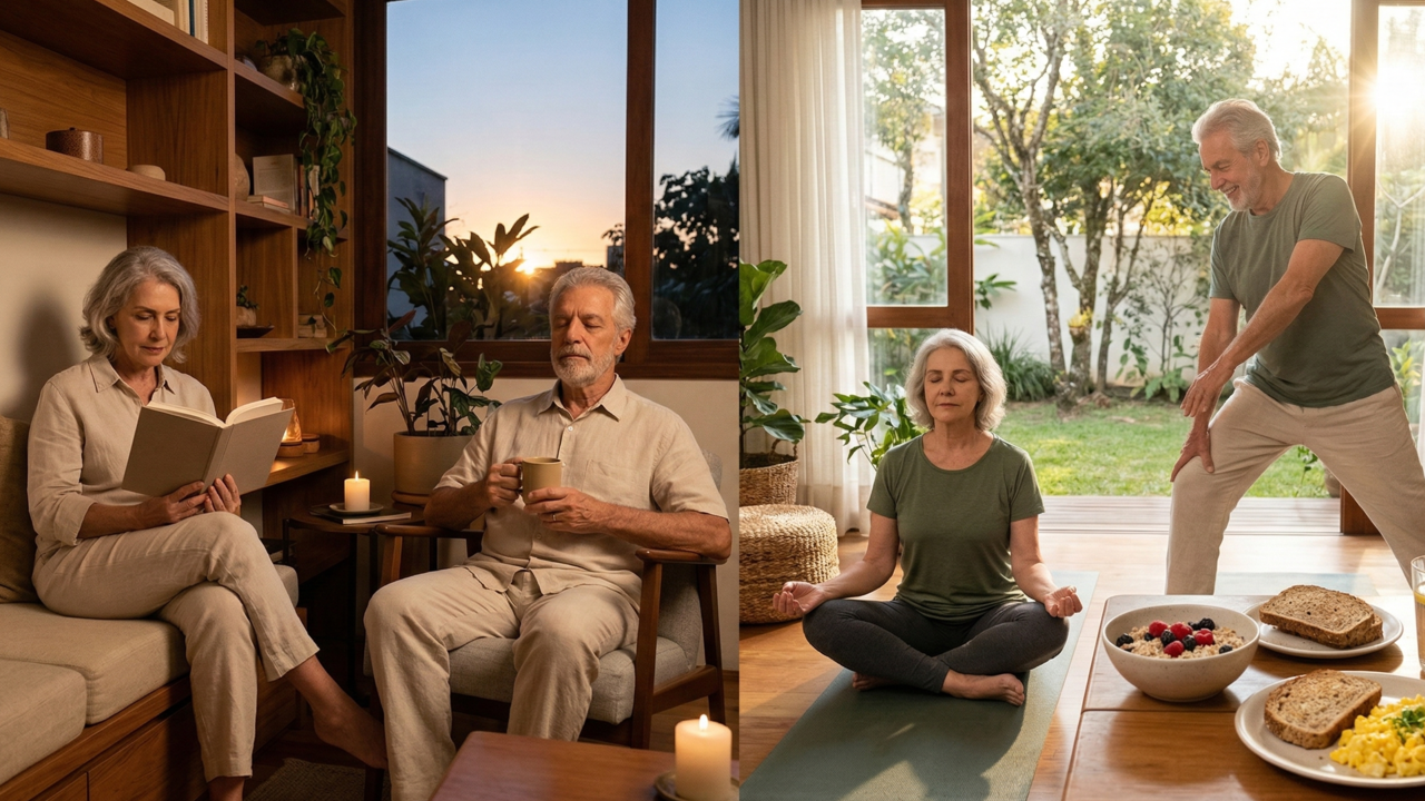 A exposição excessiva à iluminação artificial durante a noite suprime a produção de melatonina, hormônio essencial para o sono reparador. Pessoas que vivem muito evitam telas de celulares ou televisões ligadas momentos antes de dormir para preservar o ciclo circadiano. Esse cuidado simples garante que o cérebro entre em um estado de relaxamento real e regenerador.