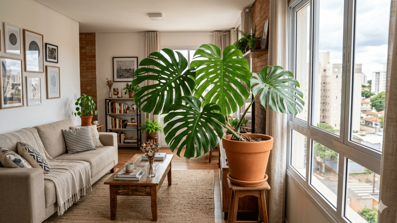 Para quem mora em apartamento, cultivar costela-de-adão começa pela escolha do local: ela prefere luz indireta intensa, ou seja, ambientes claros, mas sem aquela incidência de sol direto do meio da tarde. Varandas protegidas por vidro, salas com janelas amplas e corredores bem iluminados costumam funcionar muito bem.