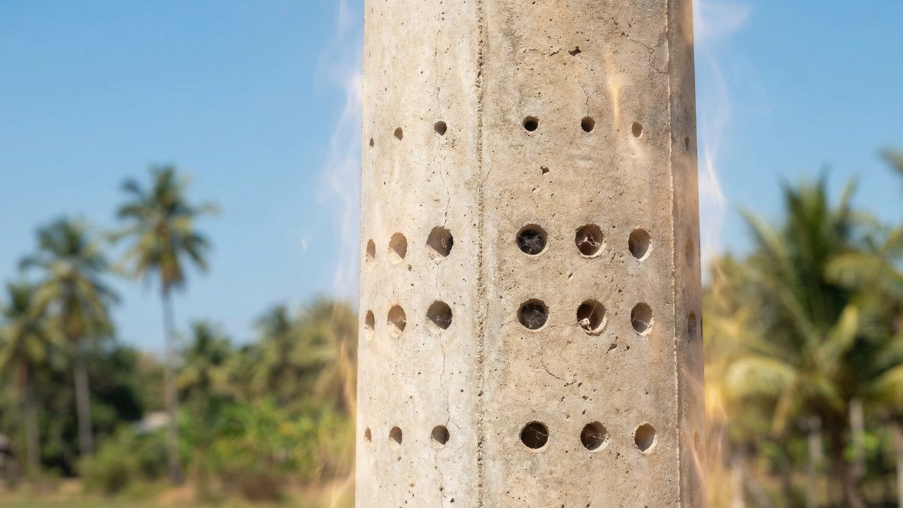 O concreto é um material que armazena grandes quantidades de energia térmica quando exposto ao sol forte durante todo o dia. As perfurações permitem que o ar circule livremente, resfriando o núcleo do poste e evitando tensões internas que causariam trincas superficiais. A Ventilação térmica adequada preserva a integridade química da mistura, impedindo a degradação precoce do material construtivo.
