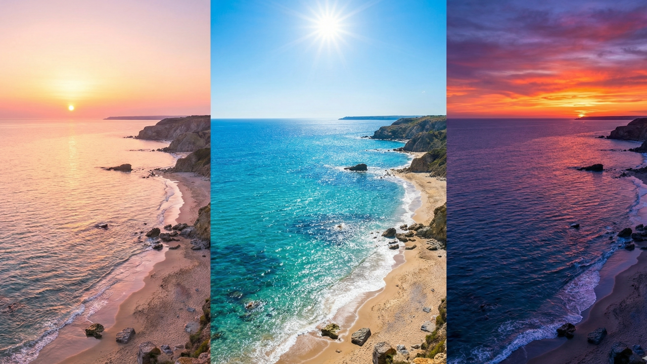 Durante o nascer e o pôr do sol, a luz precisa atravessar uma camada maior da atmosfera terrestre. Isso filtra o azul e deixa passar tons alaranjados e rosados que refletem na superfície das ondas. A mudança de cor ao longo das horas é um espetáculo visual provocado pela física atmosférica que atua sobre a imensidão salgada de forma magnífica e bela.