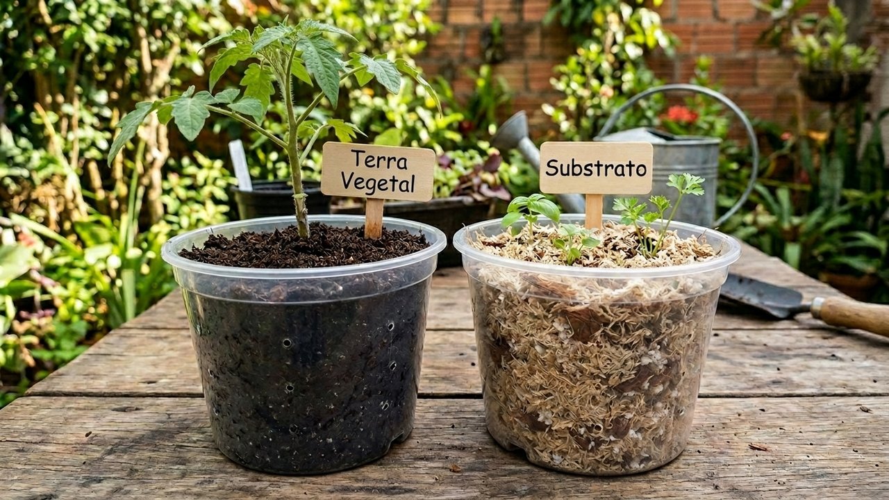 A confusão entre terra vegetal e substrato é uma das principais causas de plantas que não vingam em vasos. A escolha errada sufoca as raízes e impede a drenagem correta da água.