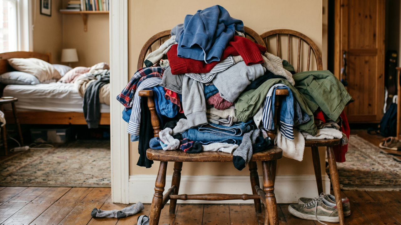 Por que a mente humana tende a criar pilhas de vestuário em móveis de apoio?