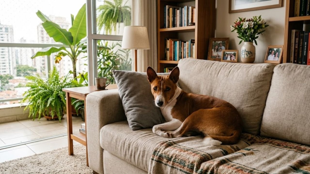 Sua personalidade independente e silenciosa — já que ele não late da forma convencional — torna-o perfeito para quem busca um animal discreto e de baixa manutenção. Dica rápida: como eles se limpam sozinhos, uma simples passagem de pano úmido após os passeios costuma ser suficiente para manter o brilho do pelo e a limpeza das patas.