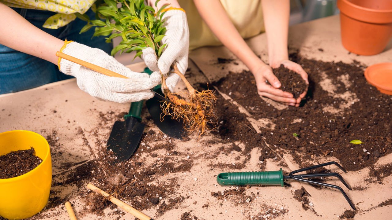 - Plante a muda de vegetal, completando com mais terra ao redor do caule.