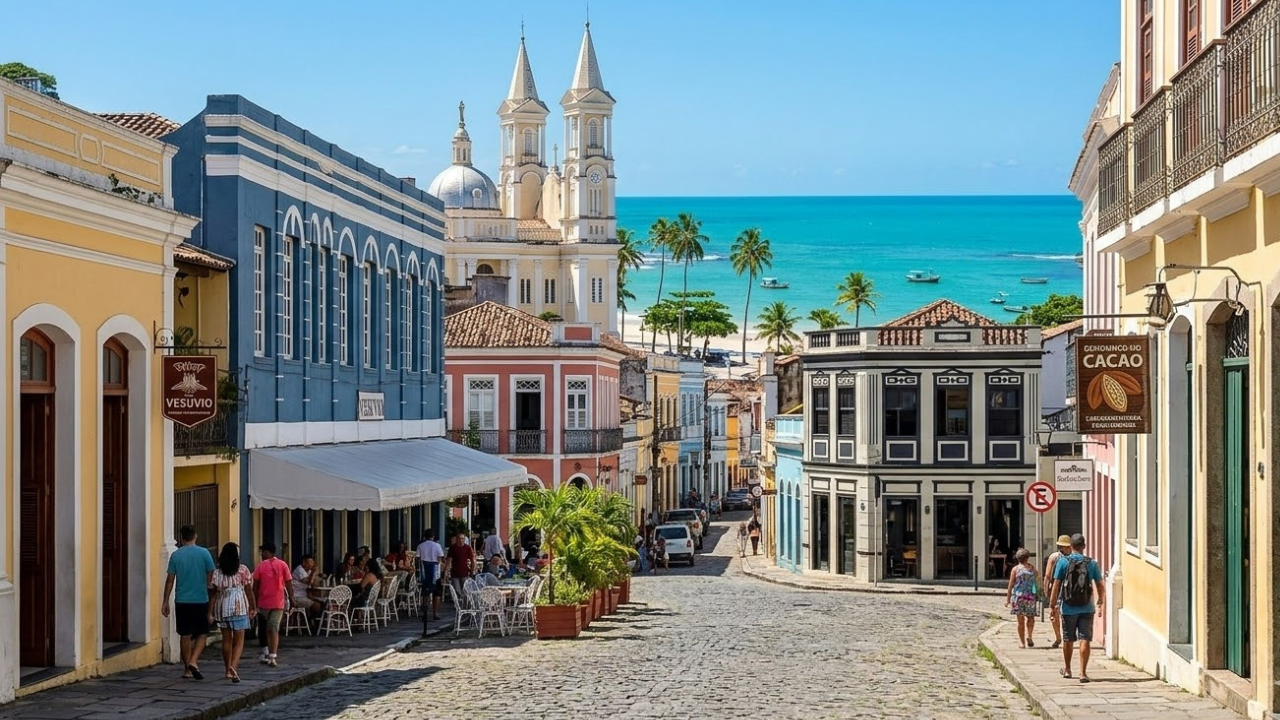 O aroma de chocolate paira no ar quente de Ilhéus, no sul da Bahia, onde fachadas do início do século XX dividem a paisagem com coqueiros e o azul do Atlântico. A cidade guarda quase cinco séculos de história e os cenários reais que Jorge Amado transformou em romances traduzidos para 49 idiomas.