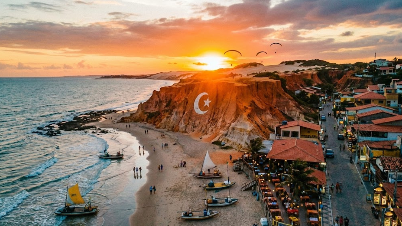 Canoa Quebrada, situada no município de Aracati a cerca de 160 km de Fortaleza, é mundialmente famosa pelo símbolo da lua com a estrela esculpido nas falésias avermelhadas. Antiga vila de pescadores descoberta pelos hippies nos anos 70, o local hoje é um destino de massa que exige planejamento para não virar uma maratona cansativa.