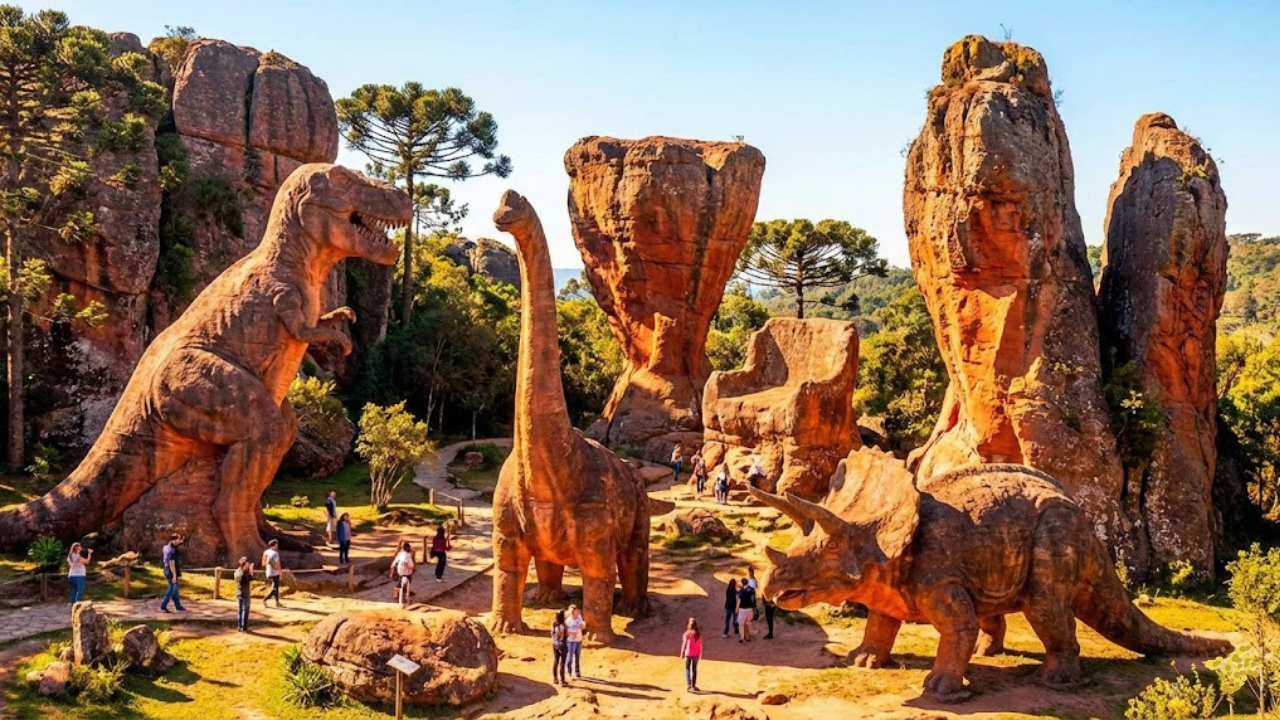 Uma cidade a 100 km de Curitiba preserva uma natureza guardada há 300 milhões de anos e um parque de dinossauros de pedra