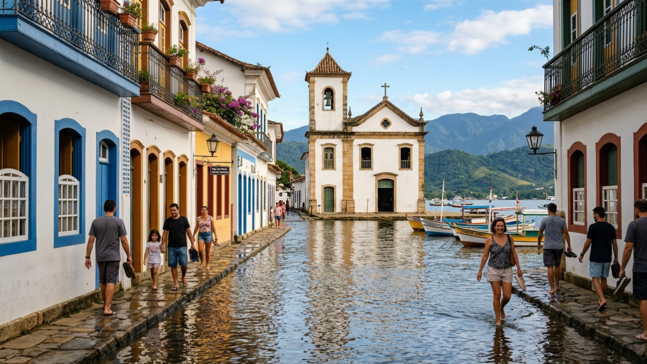 Você precisa tirar os sapatos no centro histórico, esperar a maré subir e ver a água do mar lavar as pedras do século XVIII para entender por que a UNESCO colocou Paraty em uma categoria que quase nenhum lugar do mundo ocupa.