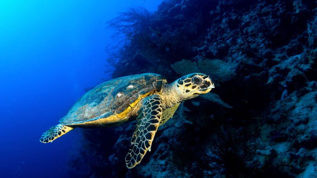 A tartaruga-de-pente (Eretmochelys imbricata) é uma das espécies marinhas mais ameaçadas do planeta. Presente nas águas tropicais brasileiras, ela é conhecida por suas carapaças coloridas e pelo papel crucial na manutenção do equilíbrio ecológico marinho.